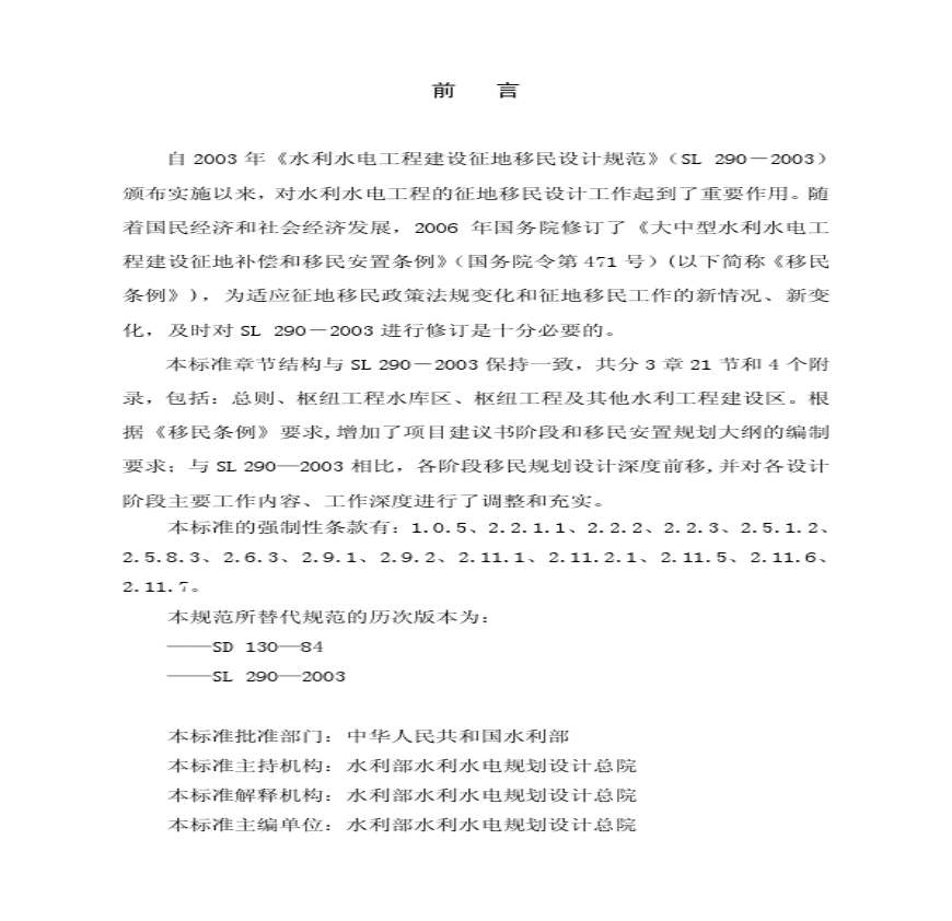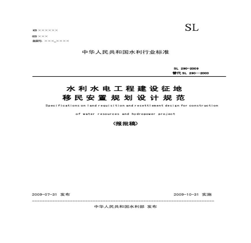 水利 水利 ICS #′ 中华人民共和国水利行业标准 替代 水利 水利国家标准 学习资料页 ICSPSL中华人民共和国水利行业标准SL水利水电工程建设征地移民安置规划设计规范SrrICS××××SLCCS×××备案号×××_××××中华人民共和国水利行业标准SL