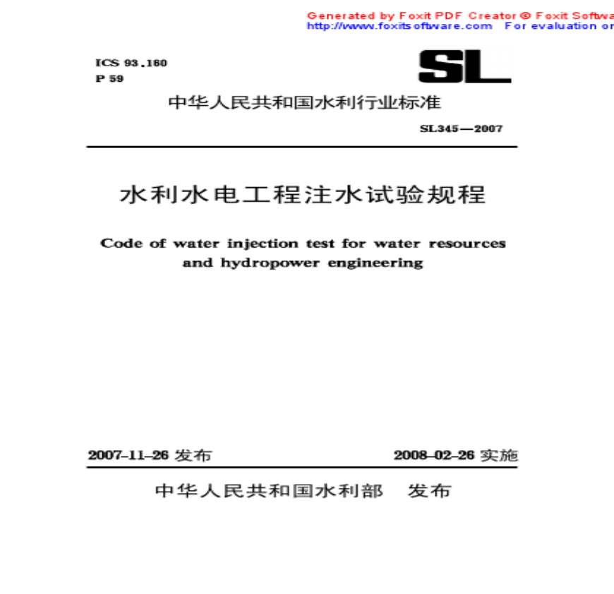 SL345-2007水利水电工程注水试验规程资料下载,喜欢的朋友可以下载收藏!