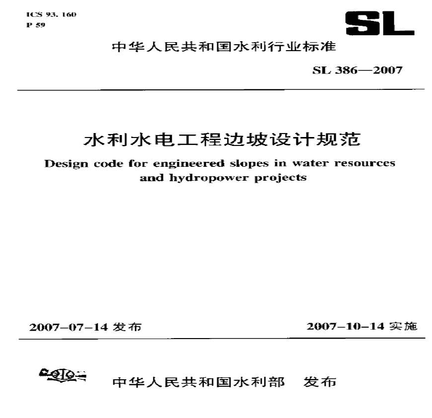 SL 386-2007 水利水电工程边坡设计规范资料下载,喜欢的朋友可以下载收藏!