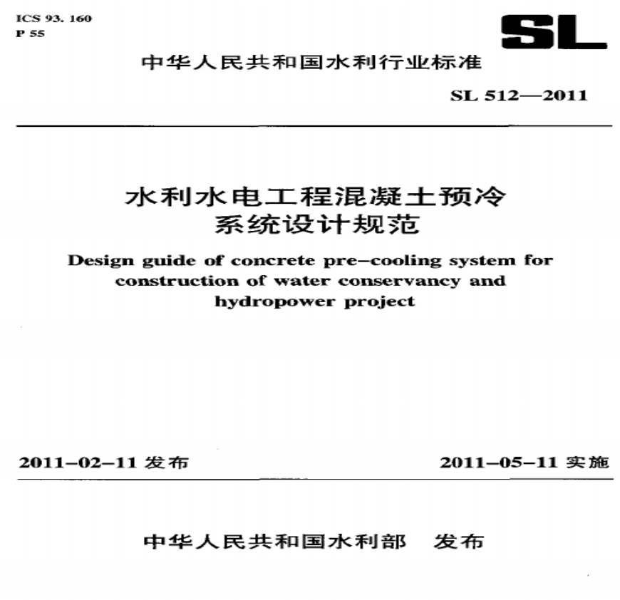 > SL 512-2011 水利水电工程溷凝土预冷系统设计规范