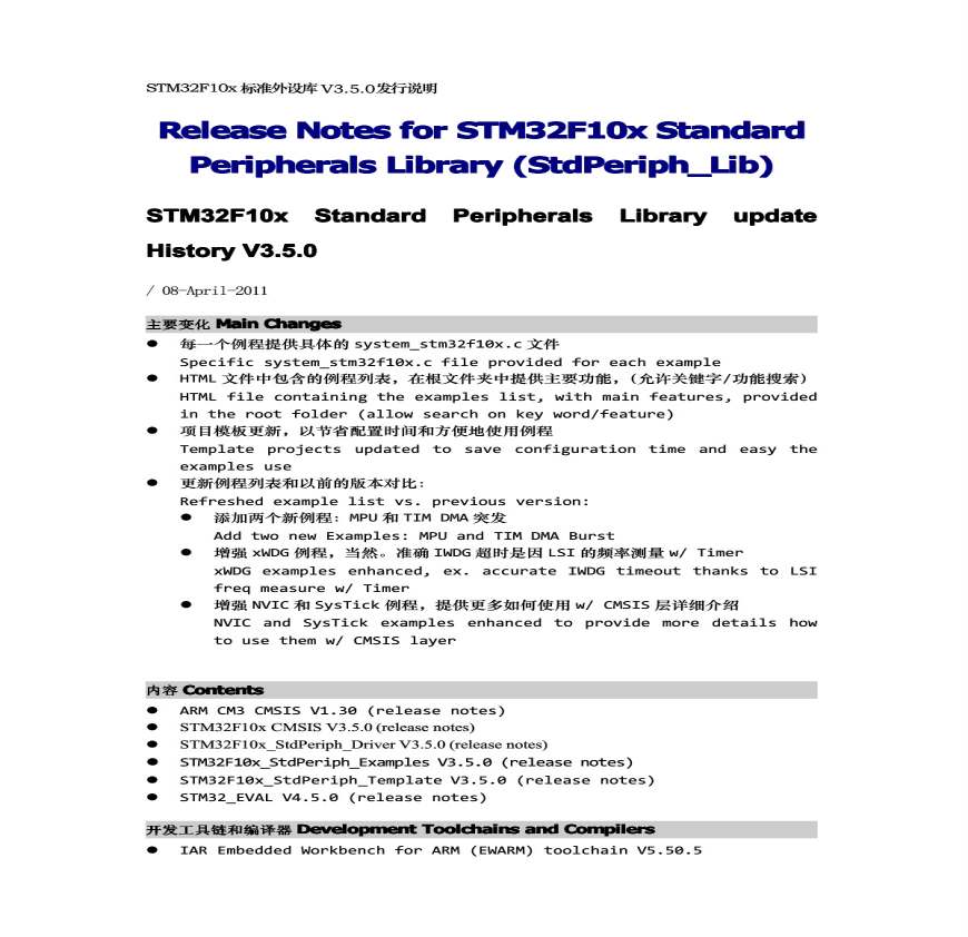 STM32F10x标准外设库V3.5.0发行说明.pdf 免费下载