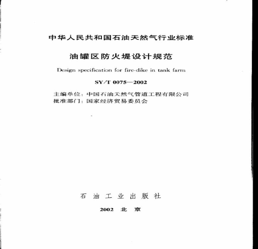 SY-T 0075-2002 油罐区防火堤设计规范.pdf 免费下载