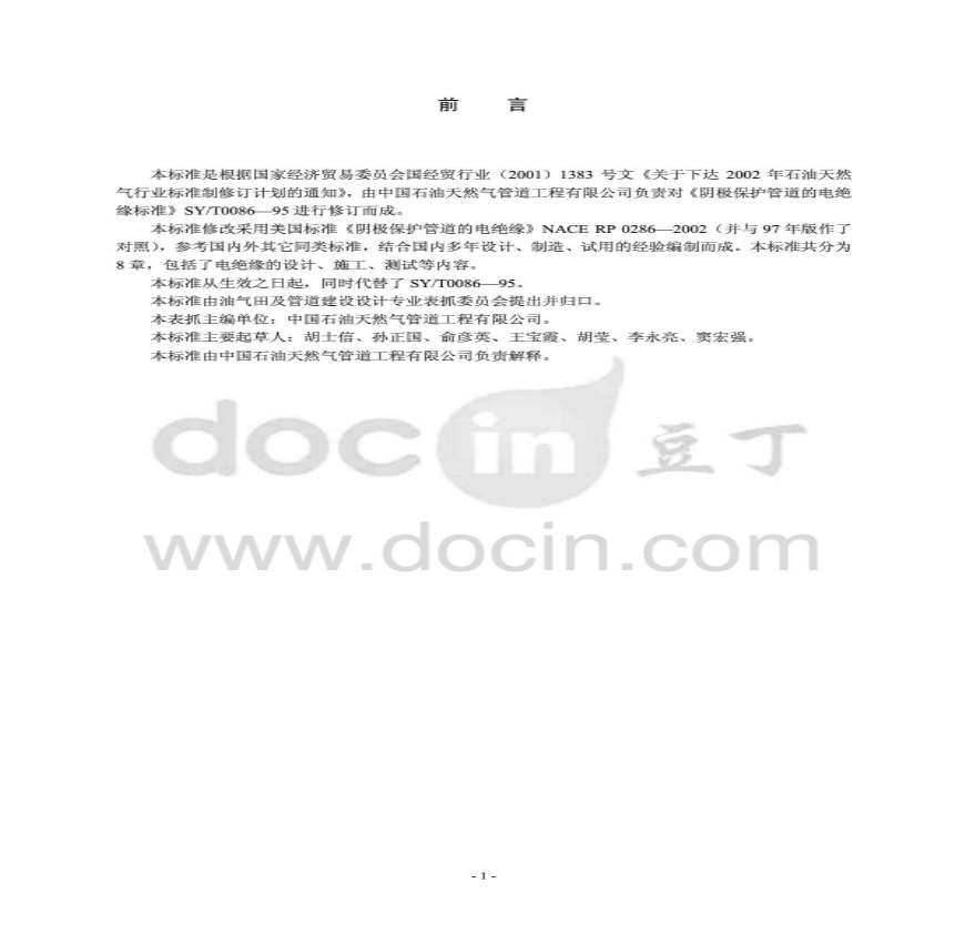 SY-T0086-2003_阴极保护管道的电绝缘标准.pdf 免费下载