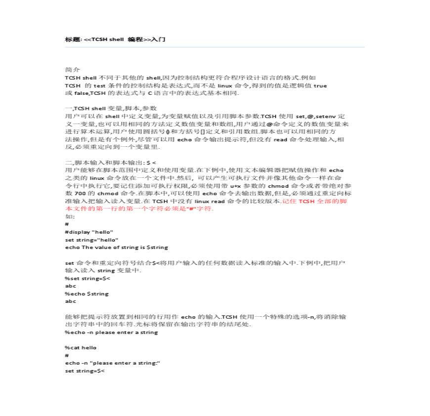TCSH_shell_编程入门_摘写资料下载,喜欢的朋友可以下载收藏!
