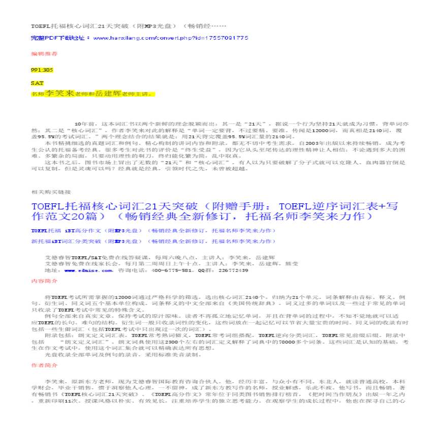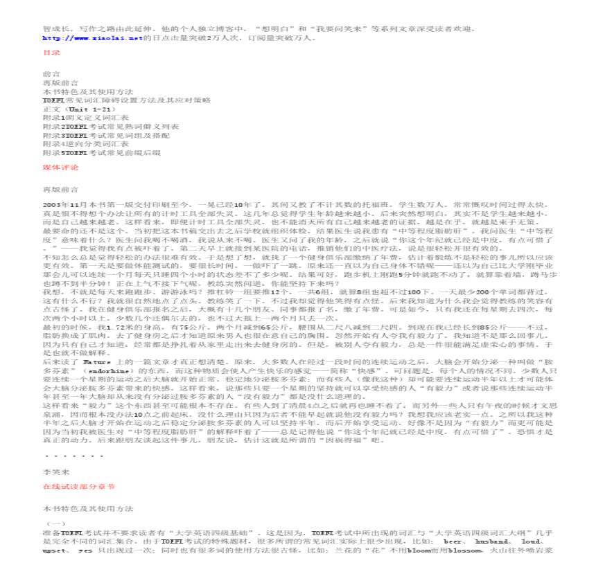 李笑来高清扫描完整版PDF+音频 () [资料] PDF+XLS+MP [资料] PDF+XLS+MP学习资料包下载地址: 图书简介: 本书部分中的词条分别由音标、释义、例句 (完整版) 文档下载 学习资料页 TOEFL 核心词汇天突破前言:每天只要你小时,个小时平均分成四大块,每一块只要你分钟,够吧,那就背咯!另外:我没有背单词的技巧,用的就是最基础的方 多多文库 学习资料页 U DAY b b 扔弃地位等 ,离弃家 园 : 积累,存储 r :, : 逆 学习资料页 。
