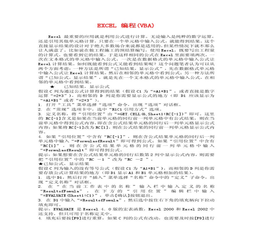 EXCEL编程(VBA) EXCEL编程(VBA) EXCEL编程(VBA) EXCEL编程(VBA) Ex最重要的应用就是利用公式进行计算。