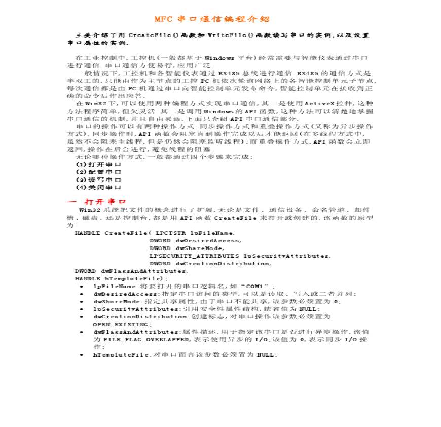 年月日其他人还搜了单片机程序例 串口通信编程详解 串口调试助手源代码 语言编程软件 语言编程入门自学 单片机语言编程例 串口通信程序实例 教程 串口编程实例 编程软件 串口通信 之类库中文手册 编程入门 抗锯齿 语言串口通信编程 串口通信编程 串口编程 b串口通信程序源码 编程实例 串口通信 b串口通信 编程器 串口通信源码 串口编程 下载_ 学习资料 年月日简介:本文档为《》,可适用于IT计算机领域,主题内容包含MFC串口通信编程介绍主要介绍了用CrF函数和WrF函数读写串口 。