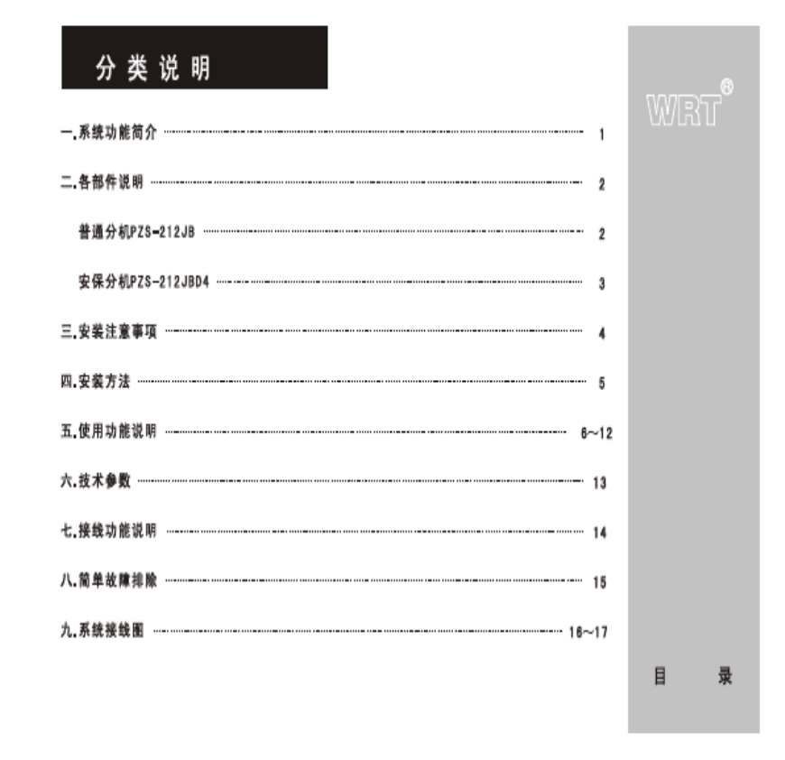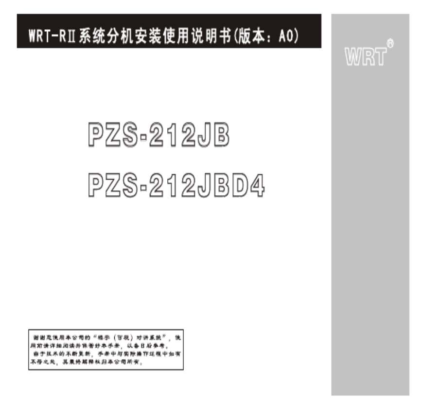 WRT-R2系统分机安装使用说明书PZS-212JBD4-慧锐通WRT楼宇对讲说明书资料下载,喜欢的朋友可以下载收藏!