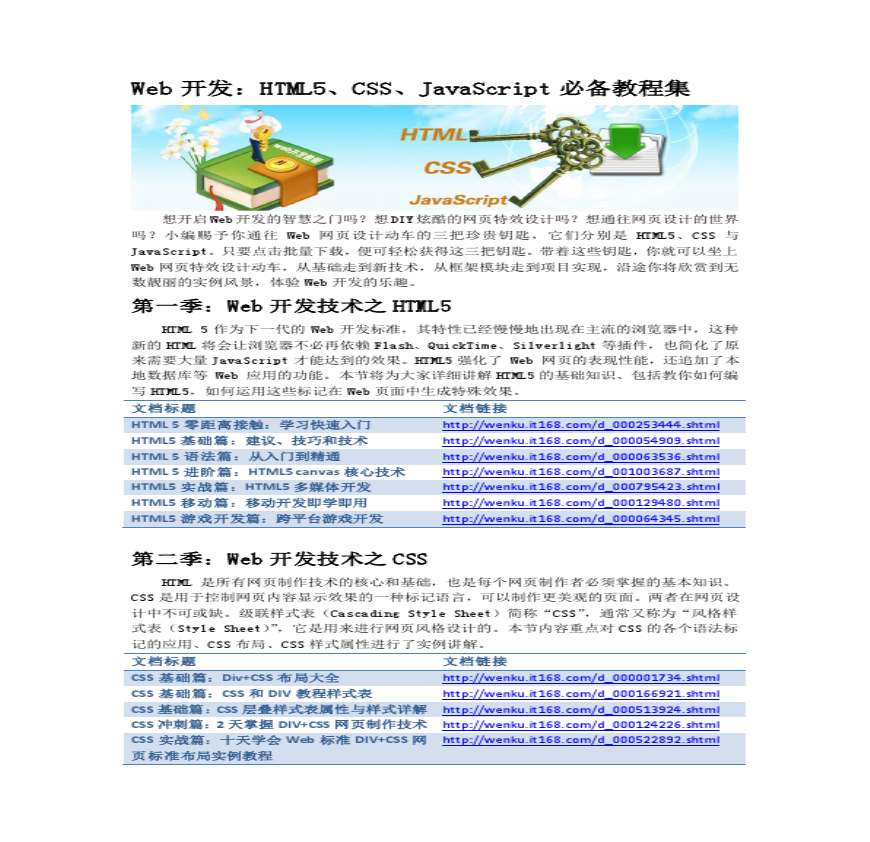 Web开发:HTML5、CSS、JavaScript必备教程集资料下载,喜欢的朋友可以下载收藏!