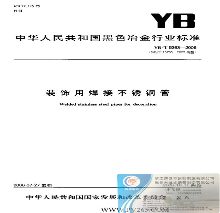 YBT 5363-2006 装饰用焊接不锈钢管资料下载,喜欢的朋友可以下载收藏!