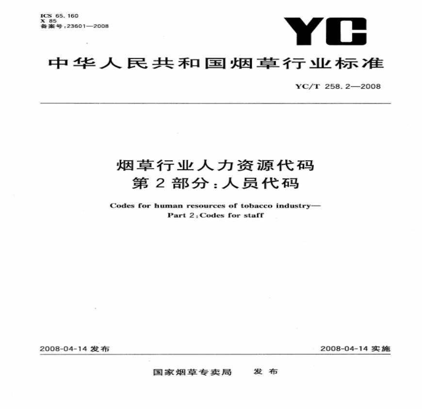 YC258.2-2008 烟草行业人力资源代码 第2部分人员代码.pdf 免费下载