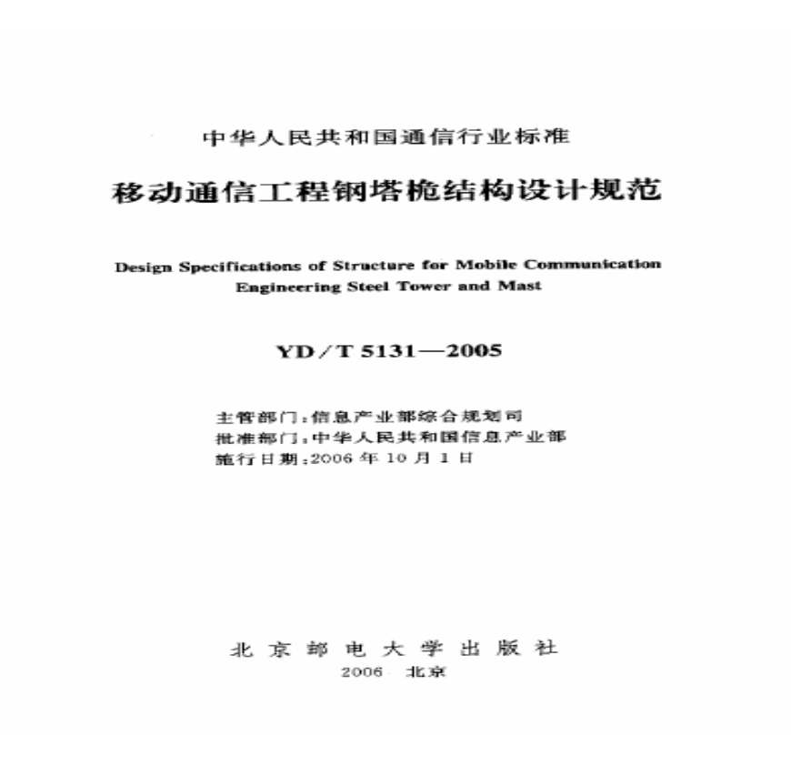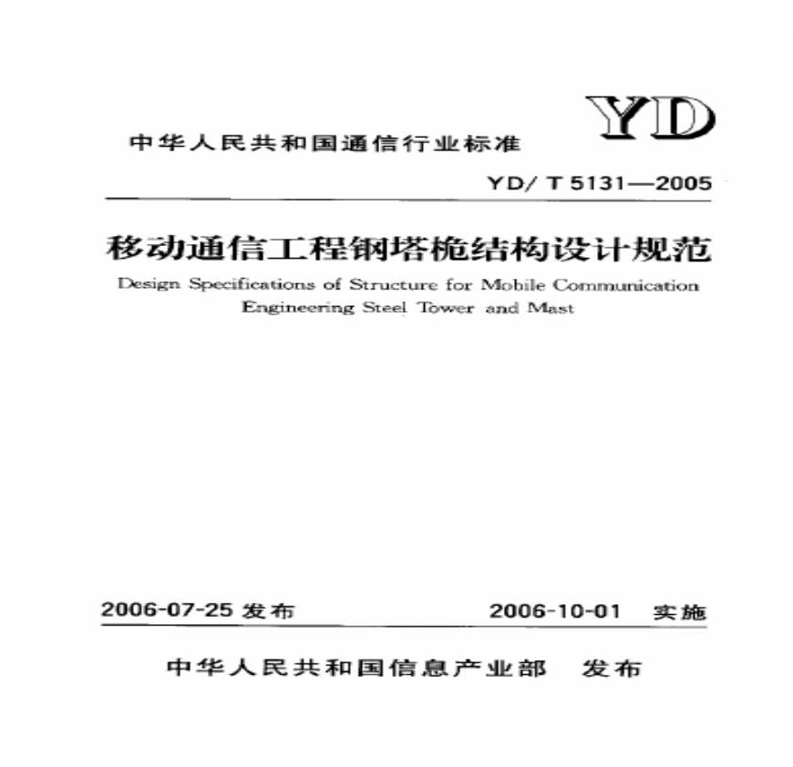 YD 5131-2005 移动通信塔桅设计规范资料下载,喜欢的朋友可以下载收藏!