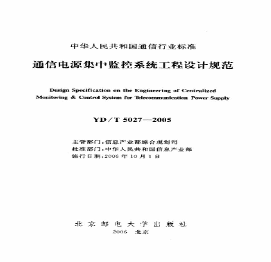 YDT 5027-2005 通信电源集中监控系统工程设计规范.pdf 免费下载