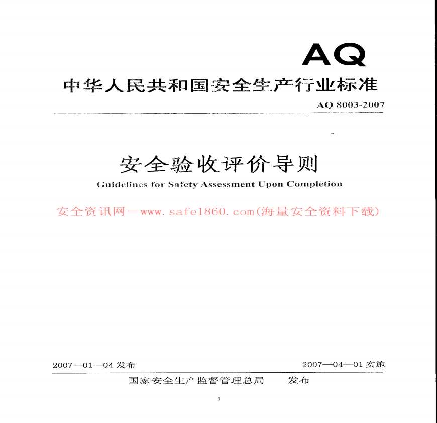 安全验收评价导则AQ8003-2007.pdf 免费下载