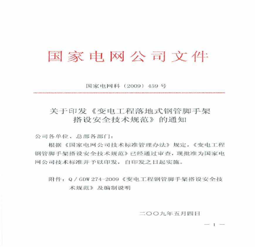 变电工程落地式钢管脚手架搭设安全技术规范.pdf 免费下载