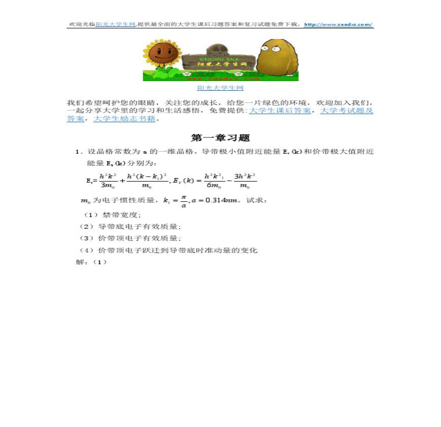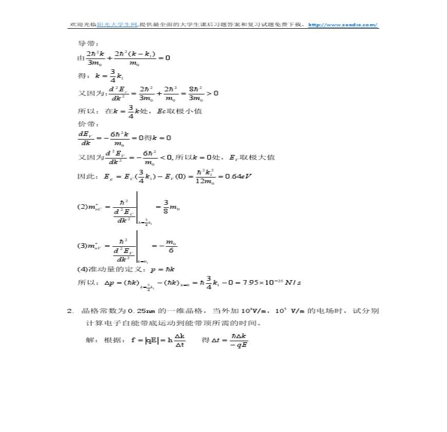 半导体物理学(刘恩科第七版)课后答案(完整版)资料下载,喜欢的朋友可以下载收藏!