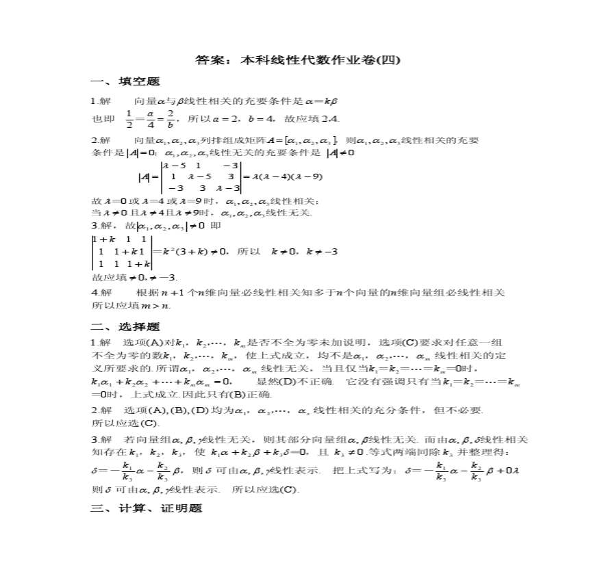 答案(二)答案一、填空题 b b ?b ? b? ___ b ? b b解第二行 ? ( ? ),第三行 ? ( ? )加至第四行得:D= = b其他人还搜了数学在线答题软件 线性代数习题与答案 线性代数第六版课后题答案及详解 线性代数期末考试题及答案 线性代数试题库及答案 专升本线性代数试题及答案 线性代数试题 线性代数练习题及答案 线性代数试卷及答案 自考本科线性代数 线性代数练习题 线性代数期末试卷及答案 线性代数习题全解 线性代数课后习题详解 成人高考数学题目及答案解析 线性代数考研练习题 线性代数课后习题答案 线性代数行列式练习题 线性代数 数值线性代数徐树方答案第二版 高中会考计算机模拟题在线考试 线性代数套题 线性代数自考试题及答案 自考线性代数历年真题及答案 山东答案学习资料页 兰大春在线 答案 b 山东答案学习资料页 山东答案 多多文库多多文库 学习资料页 文档 学前教育 基础教育 高校与高等教育 语言资格考试 实用模板 法律 建筑 互联 行业资料 政务民生 说明书 生活娱乐 续费VIP 立即续费VIP 会员中心 VIP福利