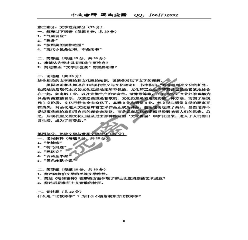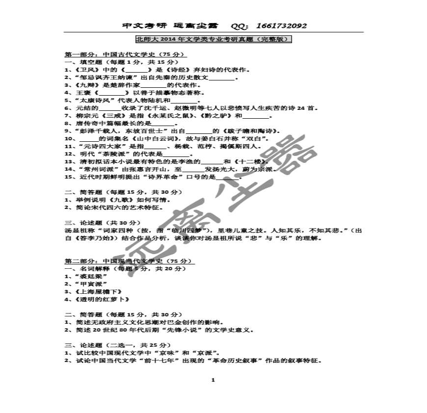 北师大2014年文学类各专业考研真题答案.pdf 免费下载