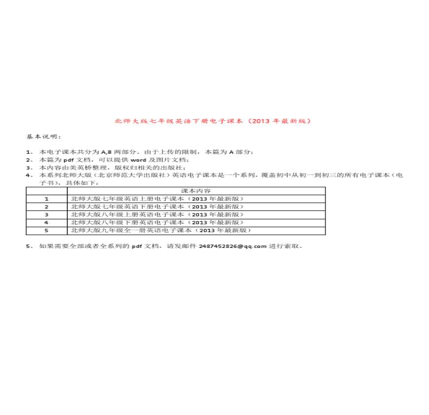 北师大版七年级英语下册电子课本(高清版)资料下载,喜欢的朋友可以下载收藏!