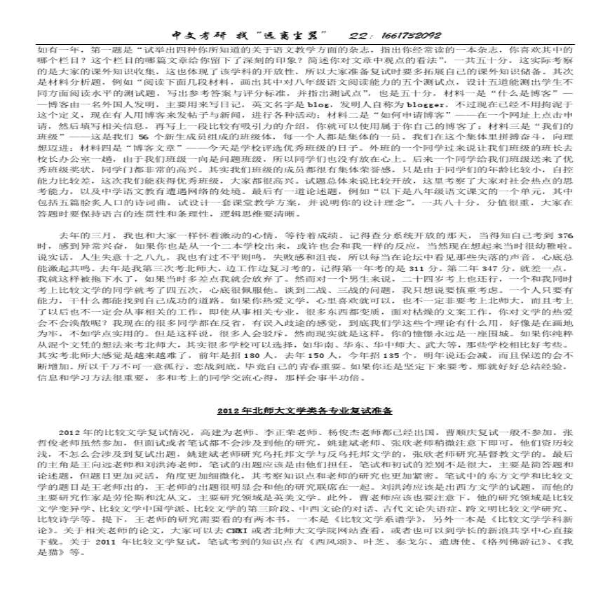 北师大文学类历年考研复试详解.pdf 免费下载