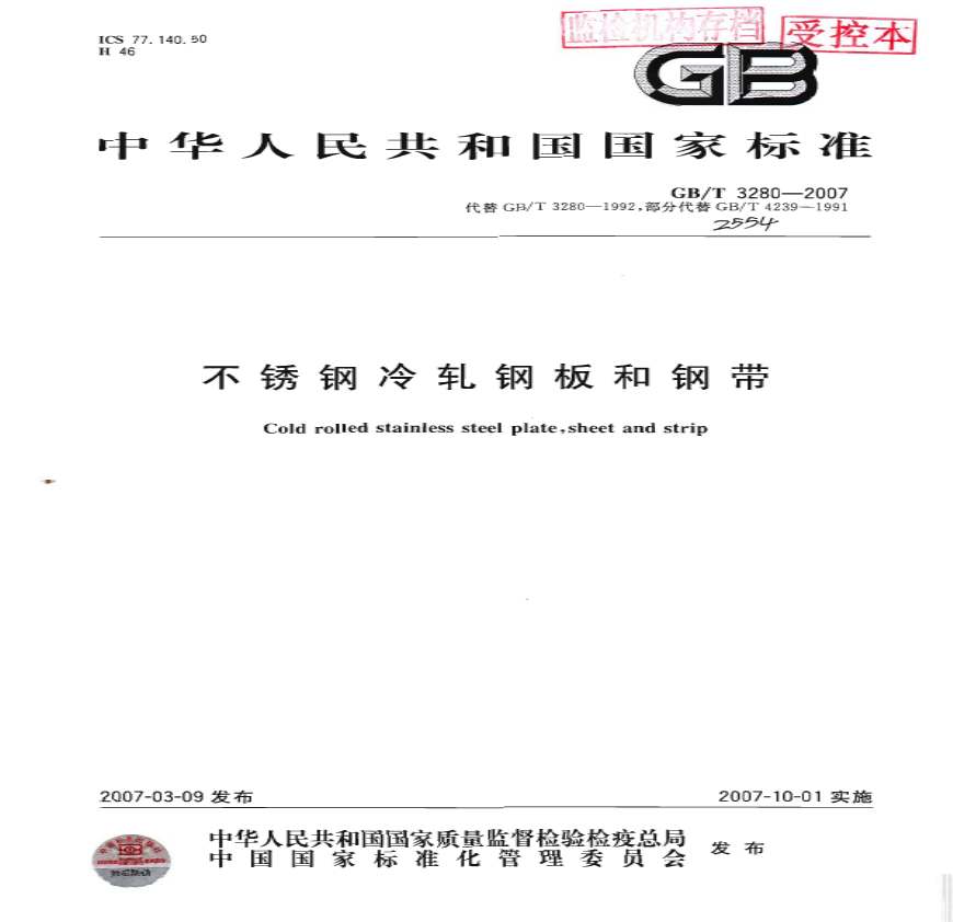 > 不锈钢冷轧钢板和钢带GB_T3280-2007