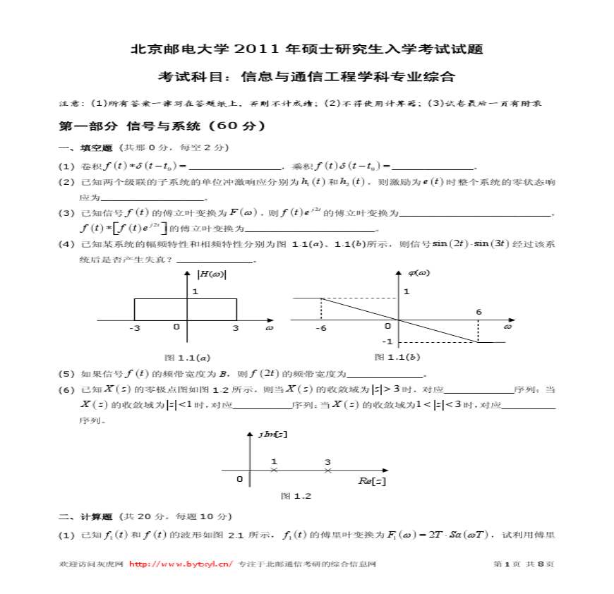 北邮2011年考研真题803通信综合.pdf 免费下载