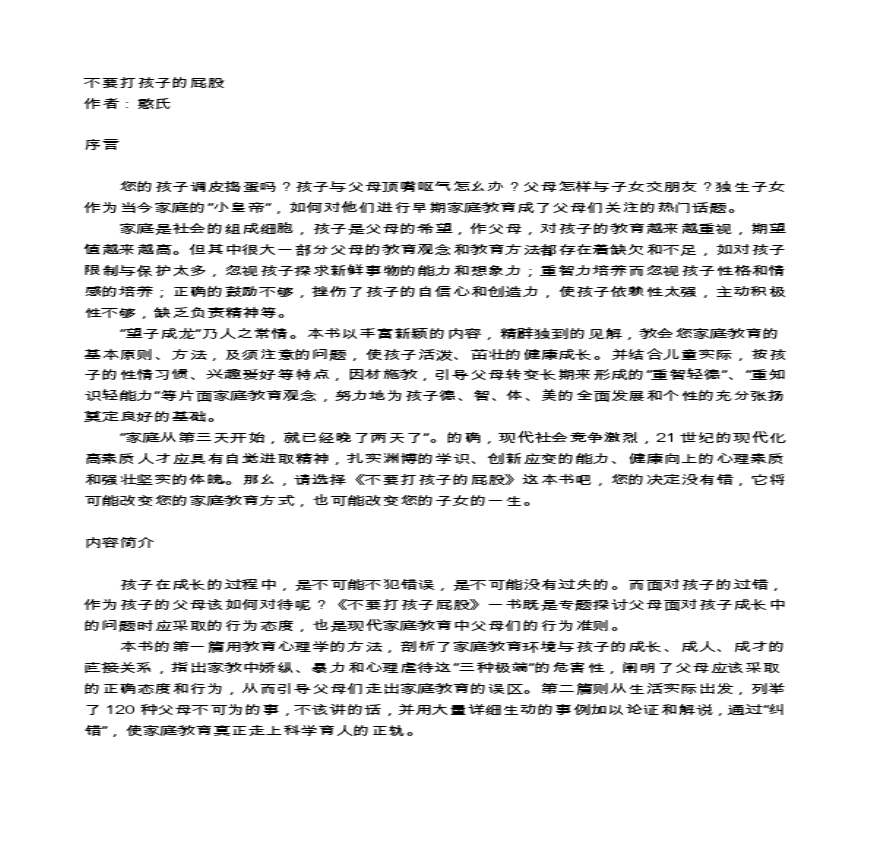 不要打孩子的屁股.憨氏.文字版资料下载,喜欢的朋友可以下载收藏!