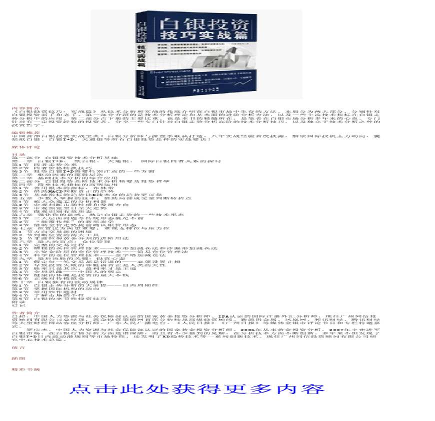 白银投资宝典·白银投资技巧:实战篇资料下载,喜欢的朋友可以下载收藏!