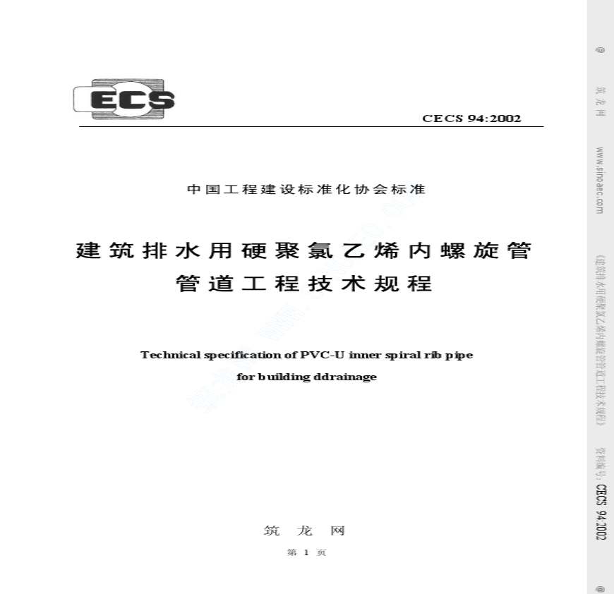 CECS94 2002 建筑排水用硬聚氯乙烯内螺旋管管道工