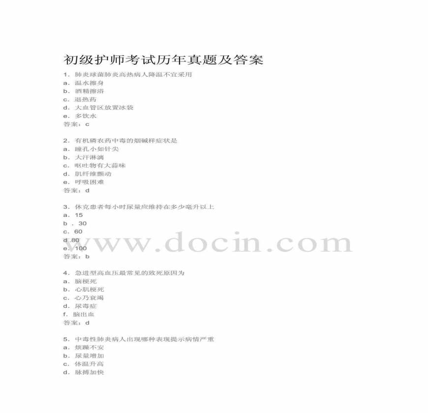 初级护师考试历年真题及答案(1)资料下载,喜欢的朋友可以下载收藏!