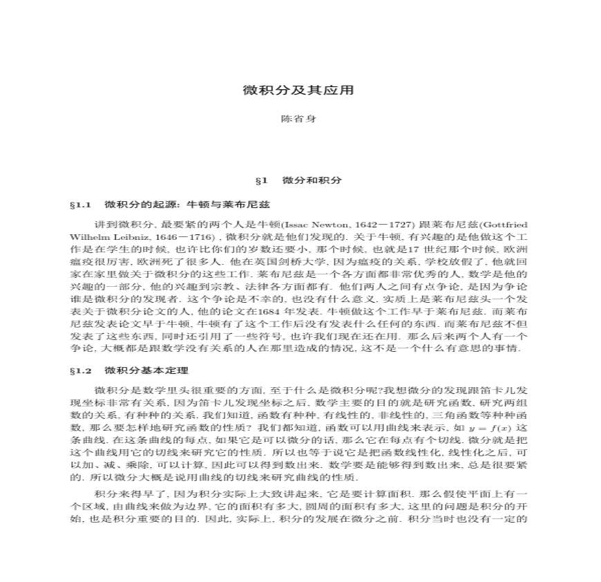 陈省身:微积分及其应用资料下载,喜欢的朋友可以下载收藏!