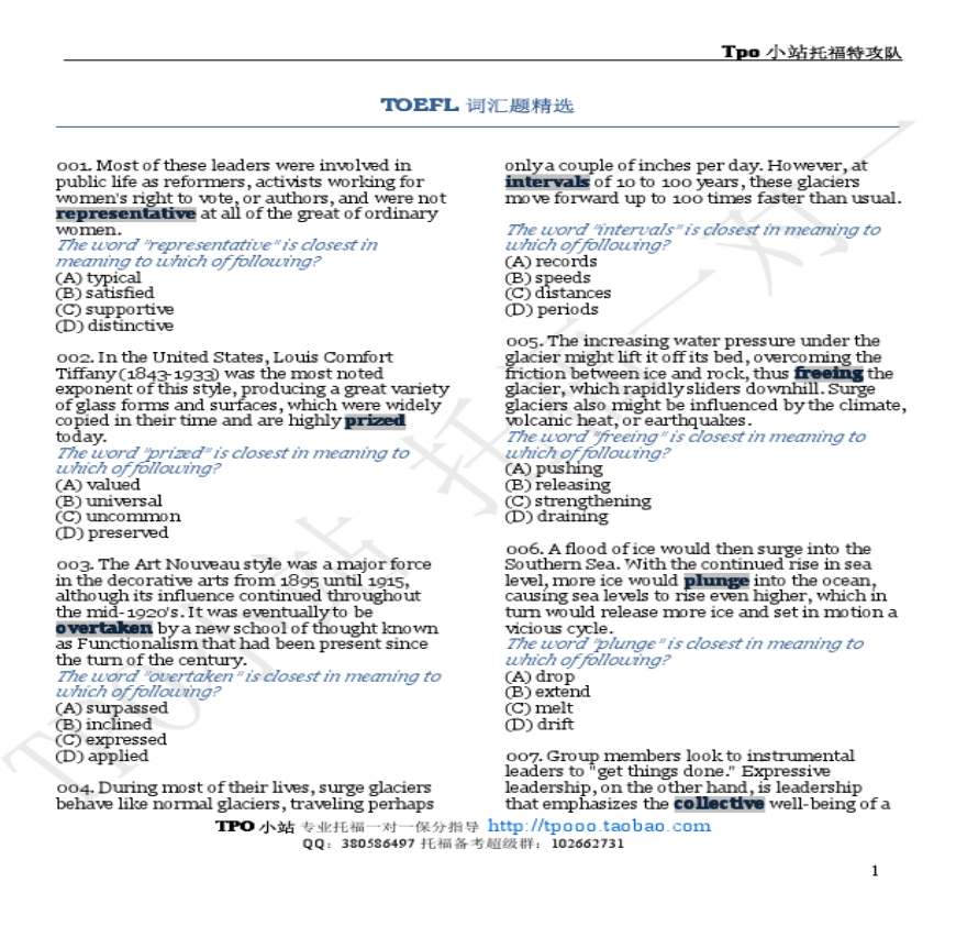 【TPOTPO小站小站】】托福托福TOEFL词汇题精选题词汇题精选题((答案答案请看请看、、页页))Mrrb TOEFL词汇题精选 学习资料页 托福词汇精选 TOEFL词汇题精选 M r r b rrr, r r学习资料页 提供优质的下载,可编辑,可替换,更多资料,快来下载! 你知道的 上传 侵权举报 [版权 学习资料页 托福 新托福 TPO口语参考答案——TPO T b b r r r E 托福阅读必备资料之——高频 -