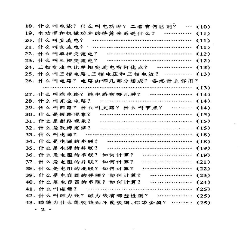 内容包括:第一部分电工基础知识;第二部分常用电工工具及测量仪表;第三部分低压电器;第四部分 电动机;第五部分灯具及照明线路;第六部分电声映像设备;第