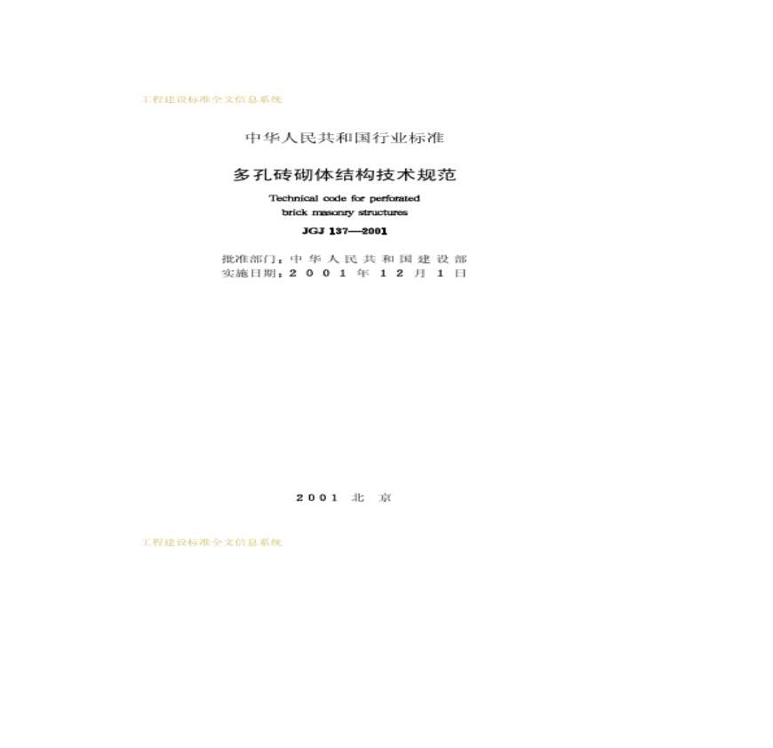 多孔砖砌体结构技术规范JGJ_l37-2001、J129-2001(2002年版).pdf 免费下载