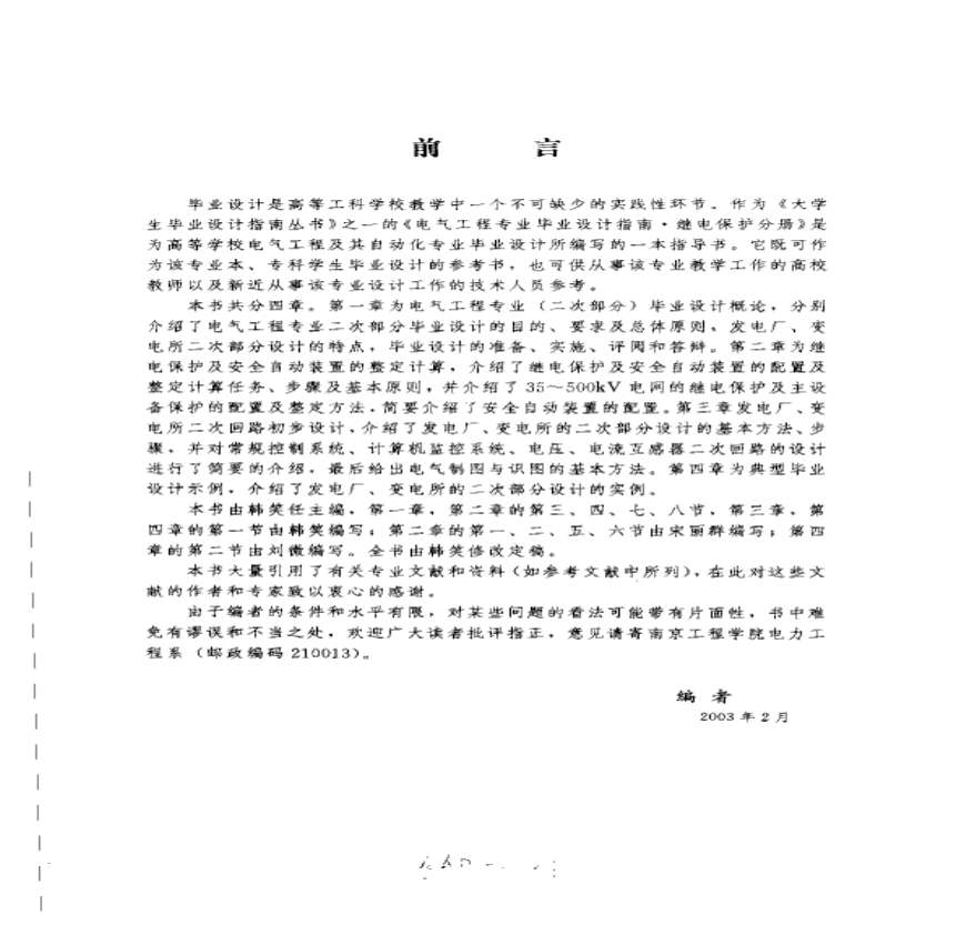(第二版) 电力电气 :_百科时间:年月日:中国水利水电b搜索下载土木工程 版权:大小: M语言:简体中文简介:最新资料下载,很实用,喜欢的朋友可以下载收藏! 房屋结构电子 点击下载 _PDF图书下载_韩笑_ 书名:;作者:韩笑,宋丽群主编;:;《(第版)》为《生毕业设计指南丛书》之一,是 学习资料学习资料页 (第二版)部分 PDF 上传日期: ::| 些 xb 为《生毕业设计指南丛书》之一,是为电气工程及其自动化专业学生进行继电保护整定计算或原理仿 。