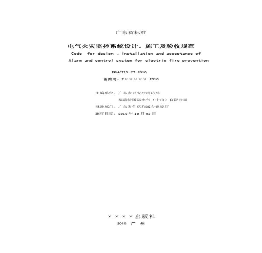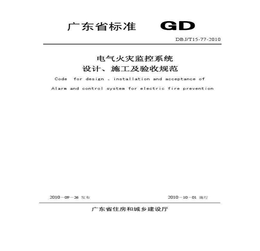 > 电气火灾监控系统设计、施工及验收规范DBJT15-77-2010