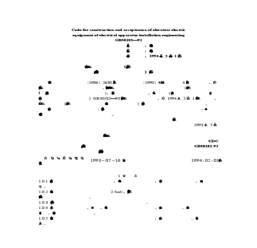 《电气装置安装工程电梯电气装置施工及验收规范》GB50182—93.pdf 免费下载