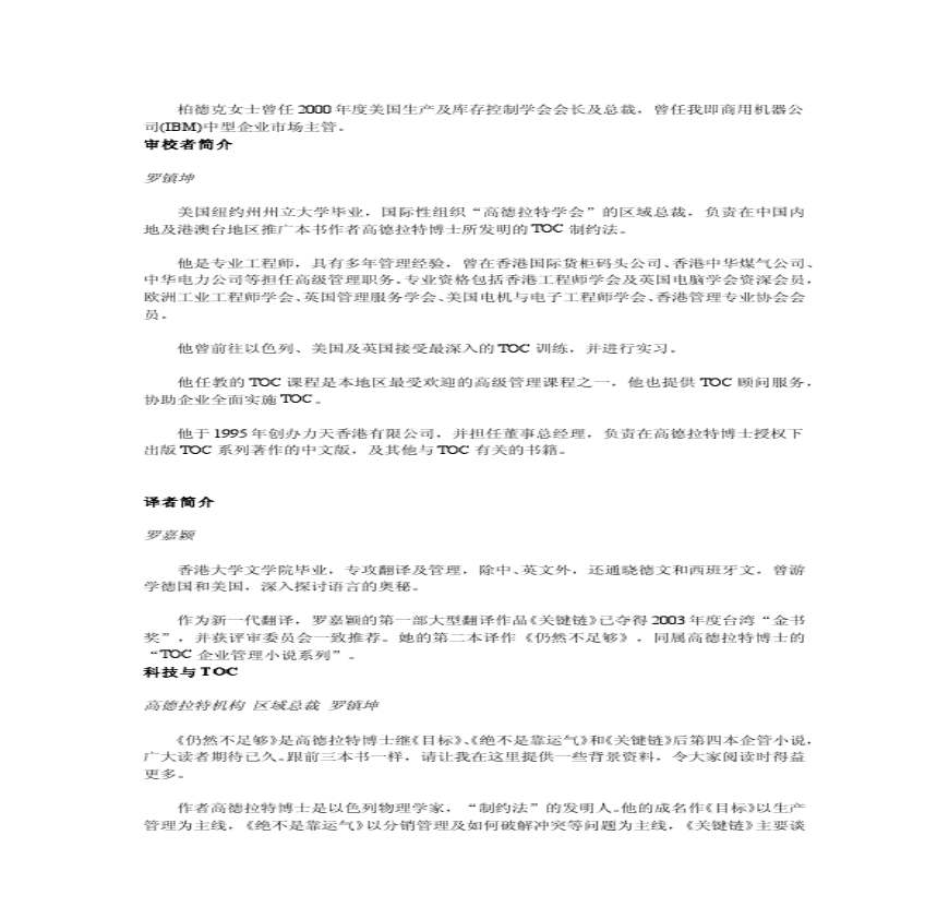 TOC系列CSDN多多文库 大小:MB更新时间:年月日简介:TOC理论即瓶颈理论在美国企业界得到很多应用,在世纪年代逐渐形成完善的管理体系。