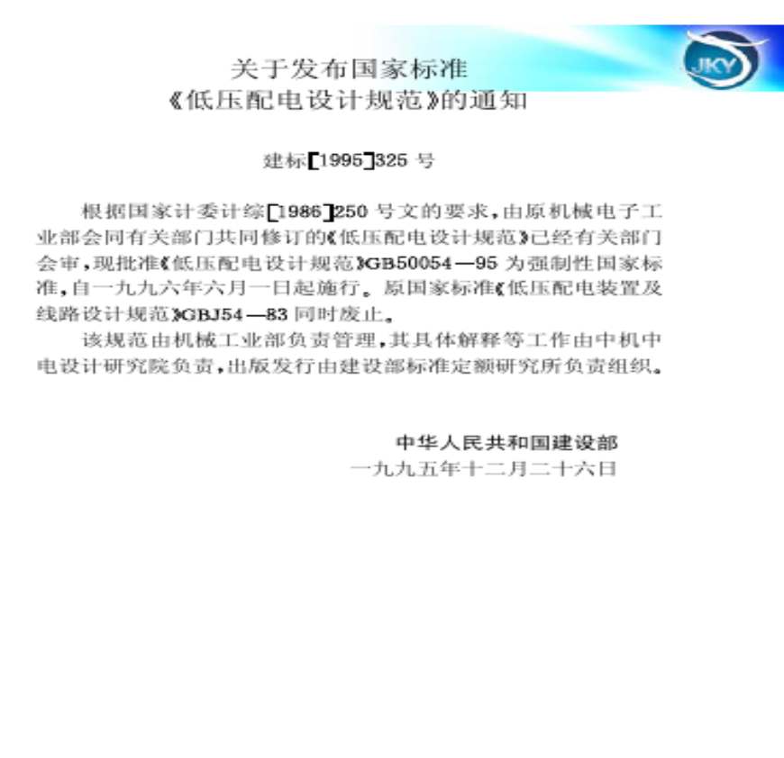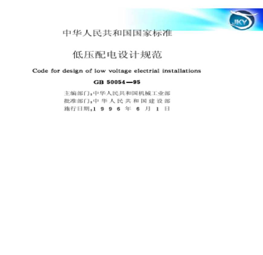 学习资料页 由原机械电子工业部会同有关部门共同修订的已经有关部门会审,现批准为强制性国家标准,自一九九六年六月一日 学习资料页 工程建设标准全文信息系统工程建设标准全文信息系统中华人民共和国国家标准低压配电设计规范主编部门中华人民共和国机械工业部批准部门中华人民共和国建设部施行 学习资料页 低压配电设计规范GB主编部门:中华人民共和国机械工业部批准部门:中华人民共和国建设部施行日期:年月日第一章总则 b b 学习资料页 低压配电设计规范GB- 。