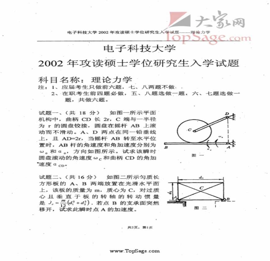 电子XX考研真题理论力学-2002.pdf 免费下载