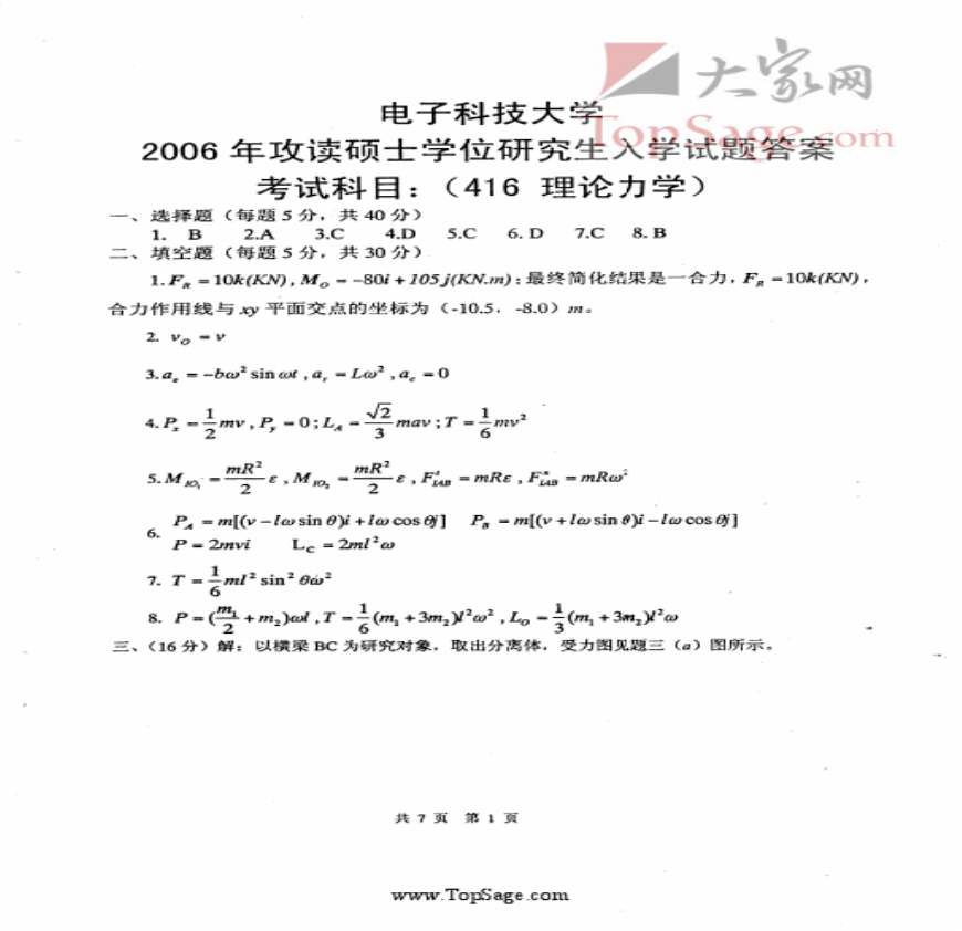 电子XX考研真题理论力学-2006答案资料下载,喜欢的朋友可以下载收藏!