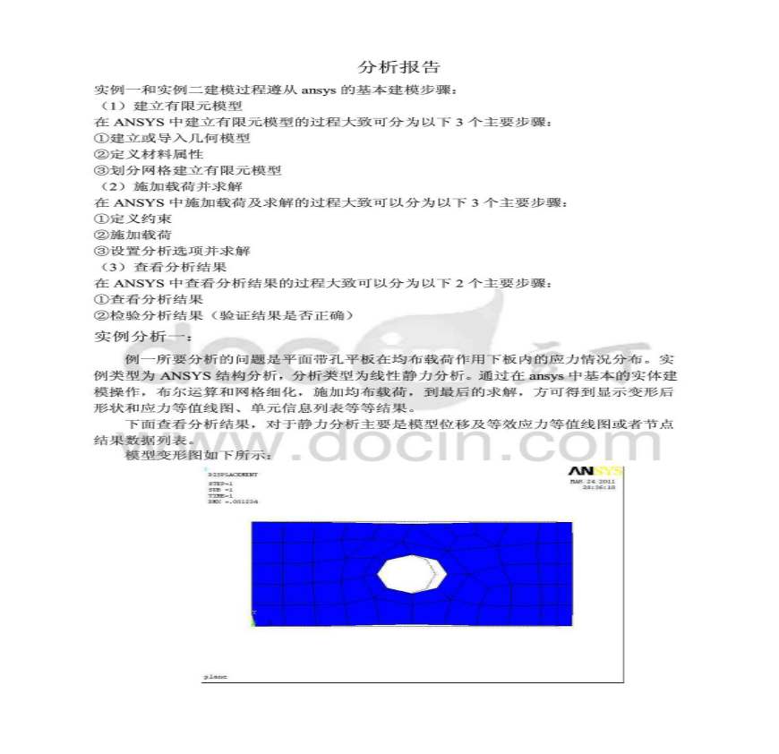 [地质_水利]ANSYS实验分析报告资料下载,喜欢的朋友可以下载收藏!