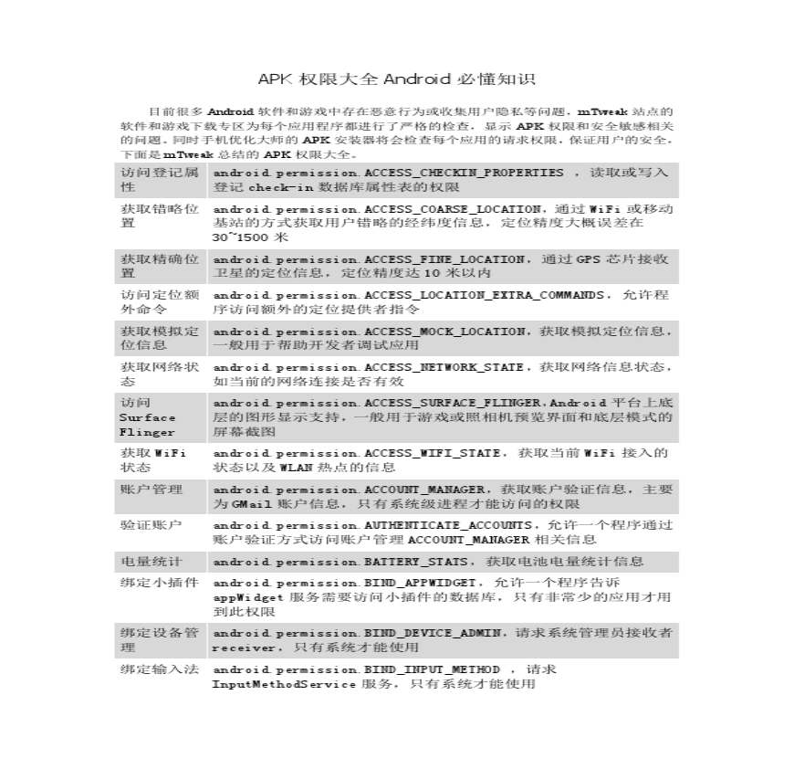 【eoe分享】APK权限大全资料下载,喜欢的朋友可以下载收藏!