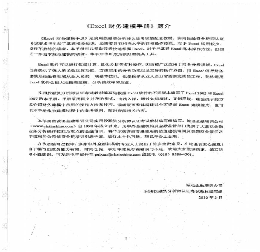 PDF下载,是实用投融资分析师认证考试中“估值建模”和“公司信贷分析”考试的配套教材。