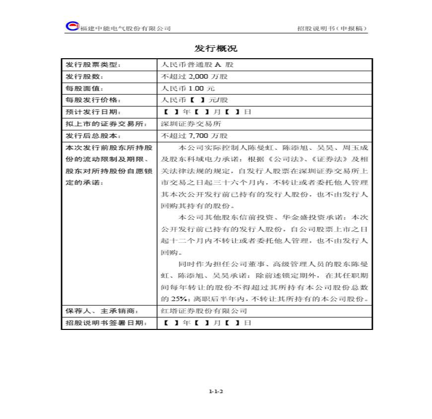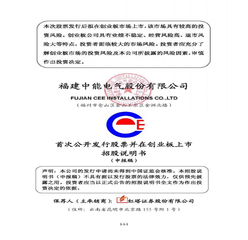 福建中能电气股份有限公司创业板首发招股说明书.pdf 免费下载