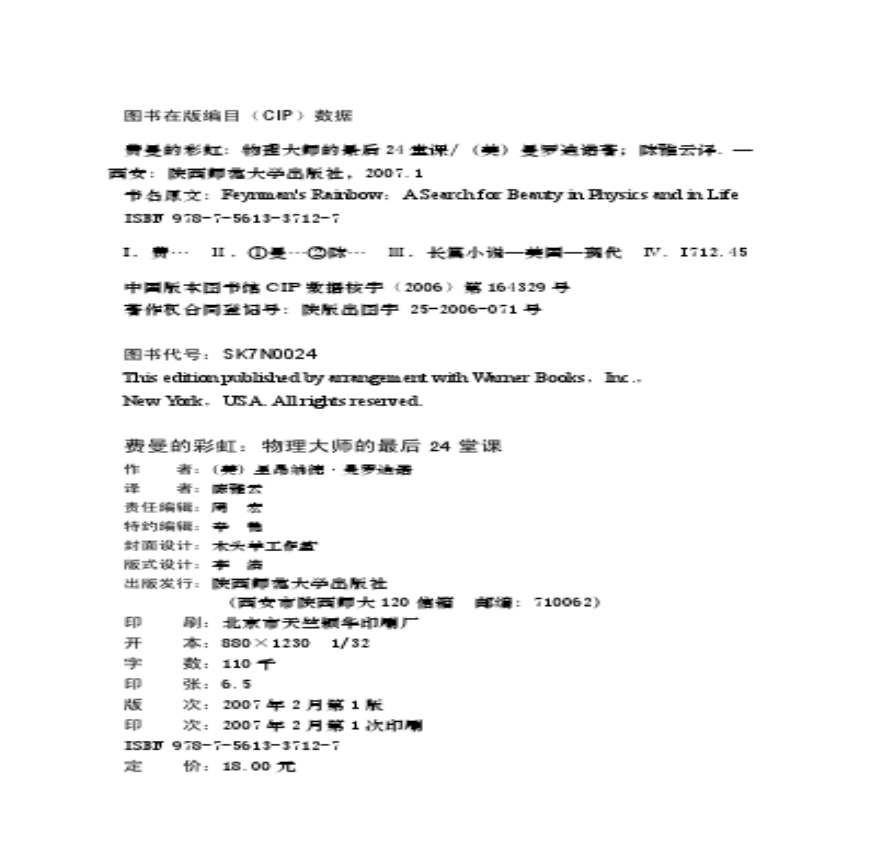 费曼的彩虹:物理大师的最后24堂课(文字版).pdf 免费下载