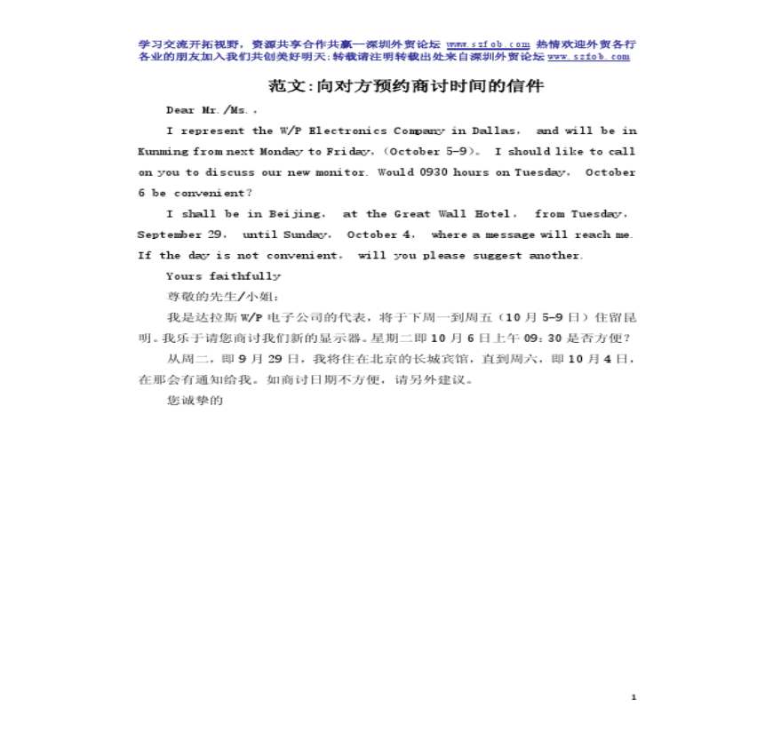 范文-向对方预约商讨时间的信件.pdf 免费下载