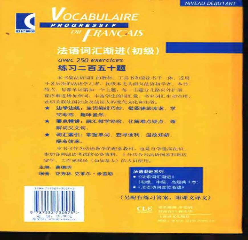 【法语学习】共(页)资料,快来下载! 学习资料页 PDF 上传日期: ::| 寄托天下原创制作提示:此书版权归上海译文所有,严禁 其他人还搜了西班牙语入门自学 法语入门从零开始学法语 德语入门从零开始学德语 德语入门从零开始学德语自学 法语词汇渐进初级 法语交际口语渐进初级 法语入门单词表 法语入门 从零开始学法语 循序渐进法语听写初级 法语词汇渐进 词汇句法语篇 循序渐进法语听写答案 法语基本词汇 法语基础词汇表 法语词汇大全 英语中的法语词汇 法语入门基础词汇 法语交际口语渐进 法语专八核心词汇 循序渐进法语听写 法语入门从零开始学法语暮歌 法语学习零基础入门