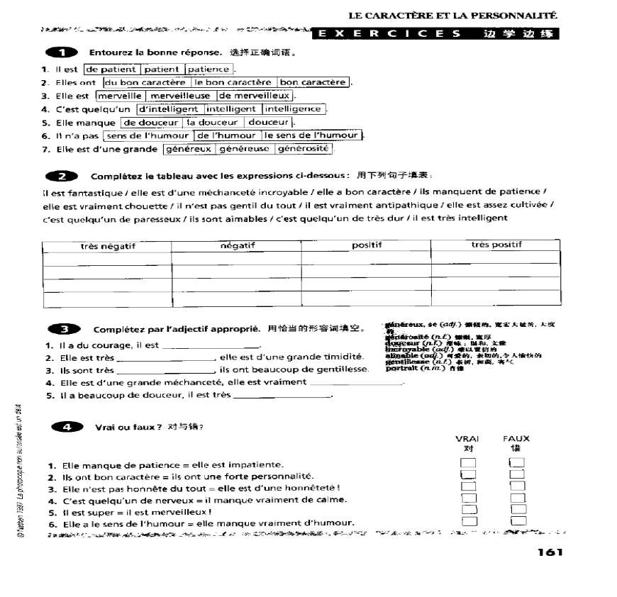 法语综合教程1学生用书课后习题参考答案(7-16课)
