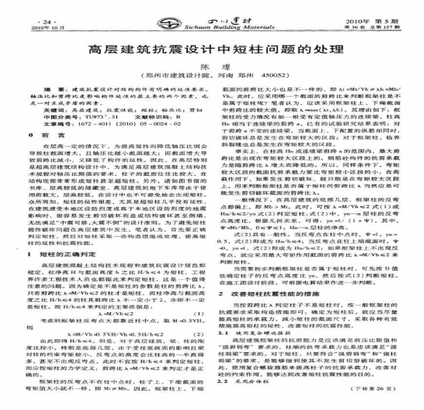 高层建筑抗震设计中短柱问题的处理.pdf 免费下载